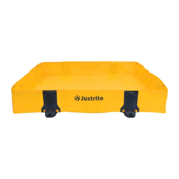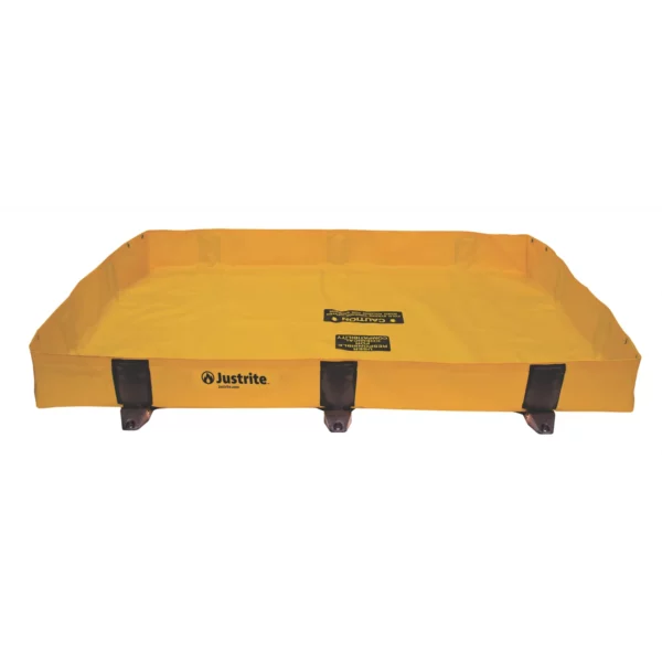 Uniwersalna, mobilna wanna do wychwytywania wycieków jest wyposażona w opatentowane wsporniki ścienne Rigid-Lock, które maksymalizują użyteczną przestrzeń wewnątrz zbiornika. Jednoczęściowa konstrukcja umożliwia szybką i łatwą konfigurację — szybko rozkłada się w celu reagowania na wycieki w sytuacjach awaryjnych.