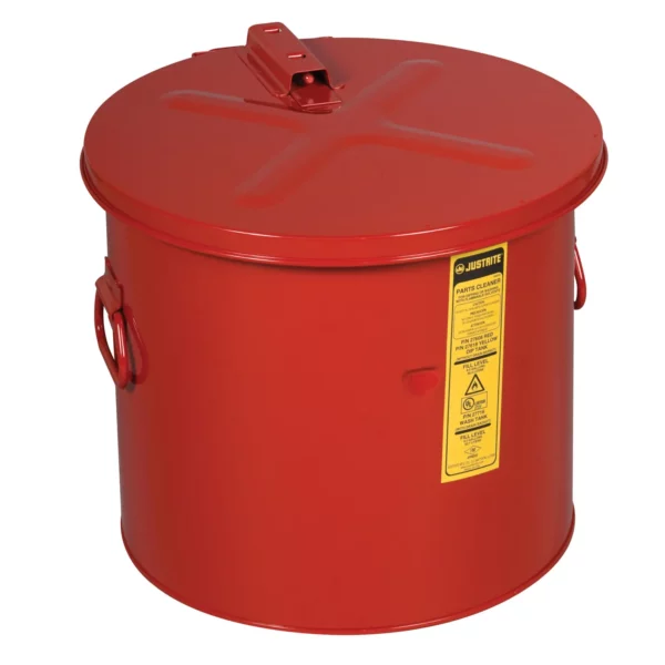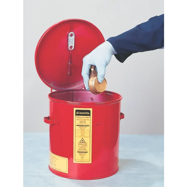 Służy do czyszczenia części i podzespołów, nadaje się do czyszczenia wielu drobnych lub pojedynczych większych elementów. Niewielki rozmiar pozwala na przenoszenie na dowolne stanowisko produkcyjne. Pokrywy zbiornika zanurzeniowego pozostają otwarte, co zapewnia wygodny dostęp; mechanizm samozamykający i element topikowy topi się w temperaturze 74°C, aby zatrzasnąć pokrywę w przypadku pożaru. Zbiornik do mycia zanurzeniowego Justrite zanurzeniowy z wkładką polietylenową zapewnia wyjątkową odporność chemiczną, umożliwiając stosowanie z agresywnymi, żrącymi chemikaliami.